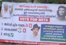‘അടിമകളാകാന് ഞങ്ങളില്ല, വോട്ട് ഫോര് നോട്ട…ബോര്ഡ്വെച്ച് ‘സഖാക്കള്’
