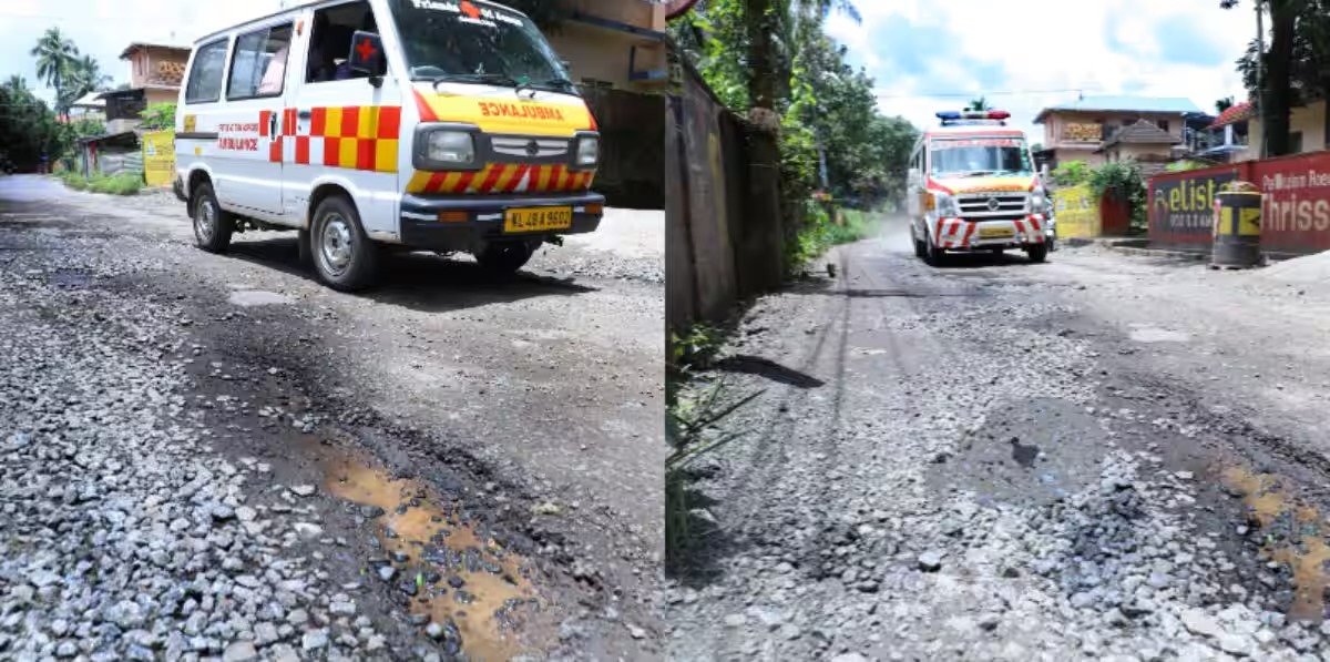 കഠിനം ആശുപത്രിയിലേക്കുള്ള യാത്ര…കുണ്ടും കുഴിയും നിറഞ്ഞ റോഡിലൂടെ രോഗികളുമായി ആംബുലൻസുകളുടെ സാഹസിക യാത്ര…