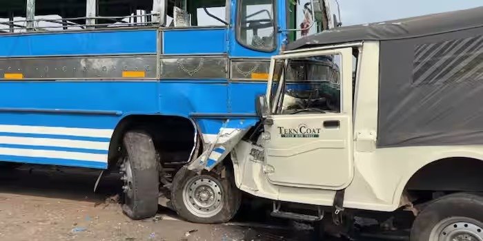 ജീപ്പ് സ്വകാര്യ ബസിലേക്ക് ഇടിച്ചുകയറി രണ്ടു പേർക്ക് ദാരുണാന്ത്യം….5 പേര്ക്ക് പരിക്ക്..