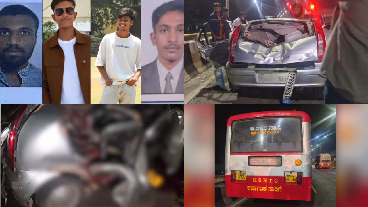 ബെംഗളൂരു നെലമംഗലയ്ക്ക് സമീപം കാർ നിയന്ത്രണം വിട്ട് കർണാടക ട്രാൻസ്പോർട്ട് കോർപ്പറേഷന്റെ ബസ്സിൽ ഇടിച്ച് അഞ്ചുപേർ മരിച്ചു. ദുർഗ പ്രസാദ്, കേശവ്, ലളിത്, ഹർഷിത്, ധനുഷ് എന്നിവരാണ് മരിച്ചത്. മരിച്ചവരിൽ നാലുപേർ കോളേജ് വിദ്യാർത്ഥികളാണ്. നാലുപേർ സംഭവസ്ഥലത്തും, ഒരാൾ ആശുപത്രിയിലുമാണ് മരിച്ചത്. തുംകൂരു ഭാഗത്തേക്ക് പോകുകയായിരുന്നു ടാറ്റ ഇൻഡിക്ക കാറിൽ സഞ്ചരിച്ചിരുന്നവർ, നിയന്ത്രണം വിട്ട് ഡിവൈഡർ മറികടന്നാണ് കാർ, എതിർ ദിശയിൽ വന്ന കെഎസ്ആർടിസി ബസിൽ ഇടിച്ചത്. സിസിടിവി ടെക്നിഷ്യൻ ആയ ഹർഷിതിന്റെതായിരുന്നു കാർ. ബെംഗളൂരു ഹോസ്കോട്ടയിൽ രണ്ട് മലയാളി വിദ്യാർത്ഥികൾ ഉൾപ്പെടെ ഏഴുപേർ മരിച്ചതിന്റെ നടുക്കം മാറും മുന്നെയാണ് വാഹനാപകടം 5 യുവാക്കളുടെ ജീവനെടുത്തിരിക്കുന്നത്.