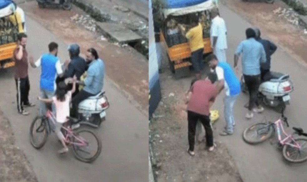 റോഡ് സൈഡിൽ നിർത്തിയ പച്ചക്കറി വണ്ടിയിൽ നിന്ന് സാധനങ്ങൾ വാങ്ങി പരസ്പരം സംസാരിച്ച് നിൽക്കുകയായിരുന്നു യുവാക്കൾ. ഇതേസമയം റോഡിന്റെ മറുവശത്ത് ചെറിയ സൈക്കിളുമായി നിൽക്കുന്ന പെൺകുട്ടി എന്തോ വായിൽ ഇടുന്നതും സിസിടിവി ദൃശ്യങ്ങളിൽ വ്യക്തമാണ്. എന്നാൽ അൽപനേരത്തിനുള്ളിൽ ബുദ്ധിമുട്ട് തോന്നിയ പെൺകുട്ടി യുവാക്കളുടെ അടുത്തേക്ക് സൈക്കിളിൽ സഹായം തേടി വരികയായിരുന്നു.