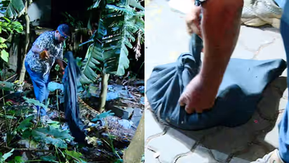 ന​ഗരത്തെ ആശങ്കയിലാക്കിയ പെരുമ്പാമ്പിനെ പിടികൂടി. വടി ഉപയോ​ഗിച്ച് പാമ്പിരുന്ന മരത്തിന്റെ മറ്റൊരു ചില്ലയിൽ ശബ്ദമുണ്ടാക്കുകയും പാമ്പിനെ താഴേക്ക് എത്തിക്കുകയുമായിരുന്നു. മരത്തിന് മുകളിൽ കുടുങ്ങിയ പെരുമ്പാമ്പിനെ തൽക്കാലം പിടിക്കേണ്ടെന്നായിരുന്നു വനം വകുപ്പ് തീരുമാനമെടുത്തിരുന്നത്. വെള്ളം മരത്തിനു മുകളിലേക്ക് പമ്പ് ചെയ്ത് താഴെ ഇറക്കാൻ ശ്രമിച്ചാൽ പാമ്പിന് അപകടമാകുമെന്ന വിലയിരുത്തലിലാണ് പാമ്പ് താഴെയിറങ്ങും വരെ കാത്തിരിക്കാൻ വനം വകുപ്പ് തീരുമാനിച്ചത്. പാമ്പിനെ നിരീക്ഷിക്കാൻ വനം വകുപ്പ് സ്നേക്ക് റെസ്ക്യൂവറെയും ചുമതലപ്പെടുത്തിയിരുന്നു. സ്നേക്ക് റെസ്ക്യൂവറാണ് ചില്ലയിൽ ശബ്ദമുണ്ടാക്കി പാമ്പിനെ താഴേക്ക് എത്തിച്ചത്.