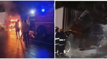 എഞ്ചിൻ ഭാഗത്തുനിന്നും പുക ഉയരുന്നത് കണ്ട് ഡ്രൈവർ പുറത്തിറങ്ങിയതിനാൽ വലിയ അപകടമൊഴിവായി. 3 ഫയർ യൂണിറ്റുകളെത്തിയാണ് തീയണച്ചത്.