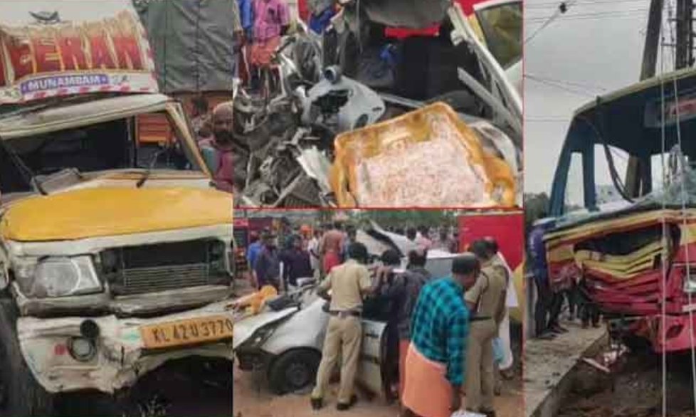 കാർ വെട്ടിപ്പൊളിച്ചാണ് അകത്തുള്ളവരെ പുറത്തെടുത്തിരുന്നത്. പിക്കപ്പ് വാനിലെ ഡ്രൈവറെയും പുറത്തെടുത്തത് വാഹനം വെട്ടിപ്പൊളിച്ചാണ്. കെഎസ്ആർടിസി ബസിൽ ഉണ്ടായിരുന്നവർക്ക് നിസാര പരുക്കേറ്റിട്ടുണ്ട്.