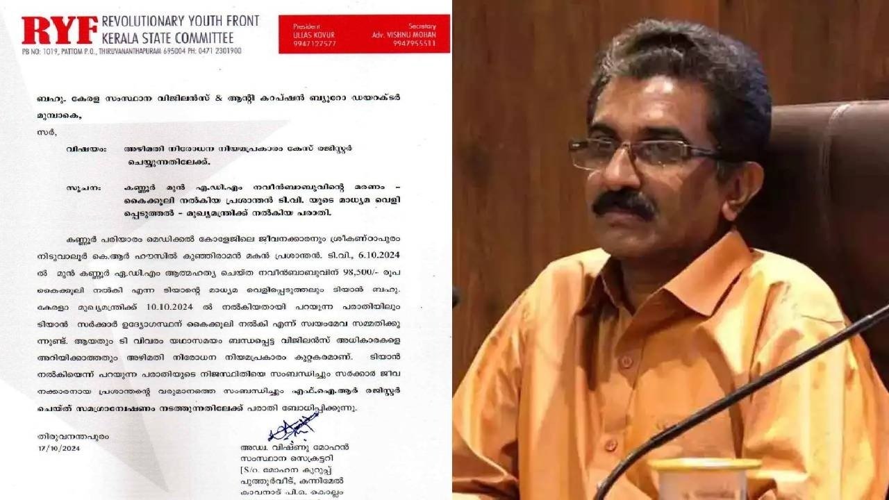 ഒപ്പിൽ വ്യത്യാസം..പേരിലും മാറ്റം..എഡിഎമ്മിനെതിരായ കൈക്കൂലി പരാതി വ്യാജമെന്ന് കണ്ടെത്തൽ…
