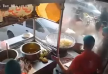 നിയന്ത്രണം വിട്ട കാർ ഇടിച്ചുകയറിയത് ഹൽവ-പൂരി സ്റ്റാളിലേക്ക്, തിളച്ച എണ്ണ മറിഞ്ഞു, 4 തൊഴിലാളികൾക്ക് ഗുരുതര പരിക്ക്