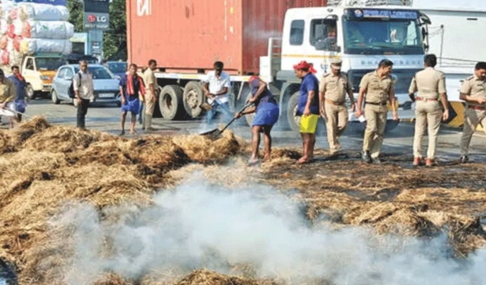 വൈദ്യുതി ലൈനിൽ തട്ടി തീപിടിച്ച വൈക്കോലുമായി പാഞ്ഞ് ലോറി; 20 കിലോമീറ്ററോളം പാഞ്ഞ ലോറിയെ പിന്തുടർന്നെത്തി…