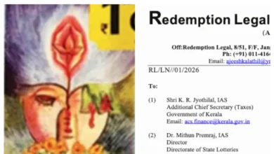 സുവർണ്ണ കേരളം ലോട്ടറിയിലെ വിവാദ ചിത്രത്തിനെതിരെ ലോട്ടറി ഡയറക്ടറിനും ,നികുതി വകുപ്പ് അഡീ. ചീഫ് സെക്രട്ടറിക്കും വക്കീൽ നോട്ടീസ്.മതവികാരം വ്രണപ്പെടുത്തുന്ന നടപടിയെന്നാണ് ആക്ഷേപം.ഈക്കാര്യത്തിൽ പരസ്യമായി മാപ്പ് പറയണം,ഇല്ലെങ്കിൽ…