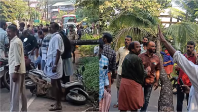 ഓടിക്കൊണ്ടിരുന്ന സ്കൂട്ടറിന് മുകളിലേക്ക് തെങ്ങ് കടപുഴകി വീണു; യുവാവിൻ്റെ തലയ്ക്ക് ഗുരുതര പരിക്ക്