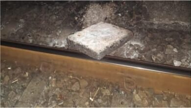 റെയിൽവേ ട്രാക്കിൽ കോൺക്രീറ്റ് സ്ലാബ്, അപകടമൊഴിവായത് തലനാരിഴക്ക്..