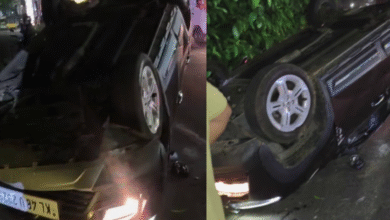 നെടുമ്പാശ്ശേരി എയർപോർട്ടിൽ നിന്നും മടങ്ങിയ കാർ നിയന്ത്രണംവിട്ട് തലകീഴായി മറിഞ്ഞു….ദമ്പതികൾക്ക്…