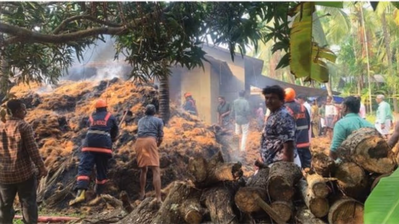 തെങ്ങോല വൈദ്യുതി ലൈനിൽ തട്ടി… തീപ്പൊരി വീണത് കയർ സൊസൈറ്റിയിൽ, വൻ അഗ്നിബാധ