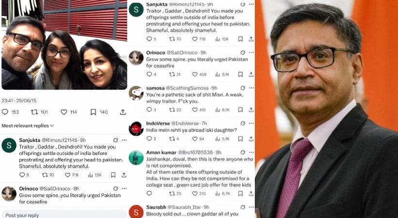 വെടിനിർത്തൽ പ്രഖ്യാപനം നടത്തിയതിന് പിന്നാലെ വിദേശകാര്യ സെക്രട്ടറി വിക്രം മിസ്രിക്കും കുടുംബത്തിനും നേരെ ശക്തമായ സൈബറാക്കണം.അധിക്ഷേപങ്ങൾ കനത്തതോടെ മിസ്രിക്ക് തന്‍റെ എക്സ് അക്കൗണ്ട് ലോക്ക് ചെയ്യേണ്ടി വന്നു. ‘രാജ്യദ്രോഹി, ഒറ്റുകാരൻ’ തുടങ്ങിയ അധിക്ഷേപ വാക്കുകളുമായി തുടങ്ങിയ സൈബർ ആക്രമണം അദ്ദേഹത്തിന്റെ മകളുടെ പൗരത്വം ചോദ്യം ചെയ്യുന്ന സ്ഥിതി വരെയെത്തി. ഇതോടെ മിസ്രി എക്സ് അക്കൗണ്ട് ലോക്ക് ചെയ്യുകയായിരുന്നു.