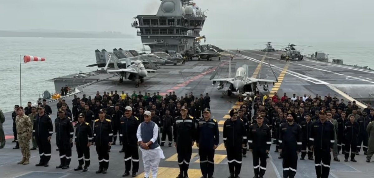 ഇന്ത്യ തദ്ദേശീയമായി നിർമ്മിച്ച ആദ്യ വിമാനവാഹിനിക്കപ്പലായ ഐഎൻഎസ് വിക്രാന്ത് സന്ദർശിച്ച് കേന്ദ്ര പ്രതിരോധ മന്ത്രി രാജ്നാഥ് സിംഗ്. ഓപ്പറേഷൻ സിന്ദൂറിൽ നാവികസേനയുടെ പങ്കിനെ പ്രശംസിച്ച അദ്ദേഹം ഇന്ത്യൻ നാവികസേനയുടെ തയ്യാറെടുപ്പ് തന്നെ പാകിസ്താനെ ഭയപ്പെടുത്താൻ പര്യാപ്തമായിരുന്നുവെന്നും കൂട്ടിച്ചേർത്തു. ഇന്ത്യൻ നാവികസേന യുദ്ധരംഗത്തേക്ക് വന്നിരുന്നെങ്കിൽ 1971-ലേതിനേക്കാൾ മോശമായ ഫലം പാകിസ്താൻ നേരിടേണ്ടിവരുമായിരുന്നുവെന്നും നാല് ഭാഗങ്ങളായി വിഭജിക്കപ്പെടുമായിരുന്നുവെന്നും അദ്ദേഹം പറഞ്ഞു.