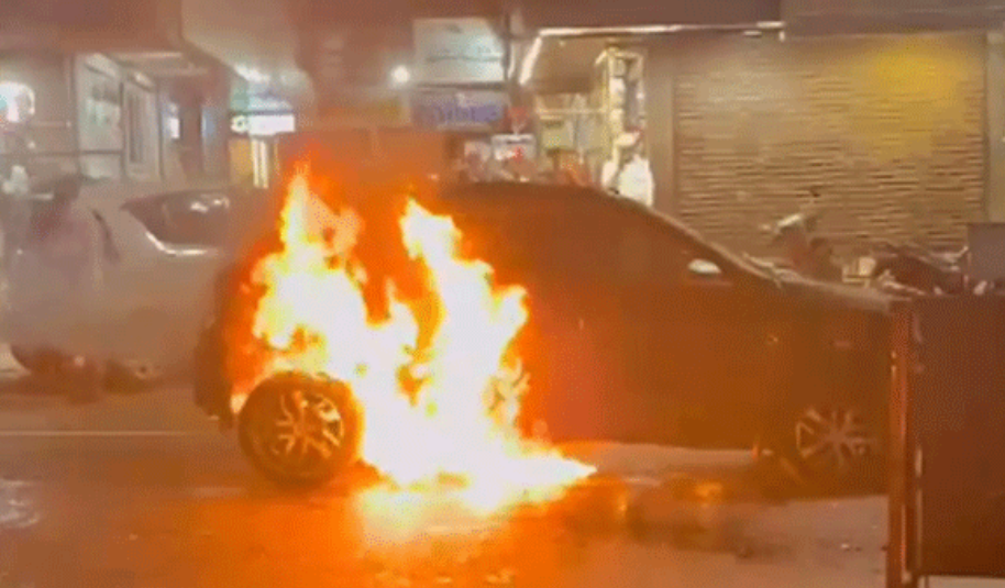 തെരഞ്ഞെടുപ്പ് പ്രചരണത്തിനിടെ പ്രവർത്തകർ പൊട്ടിച്ച പടക്കം തെറിച്ചു വീണ് അപകടം…കാറിന് തീപിടിച്ചു…