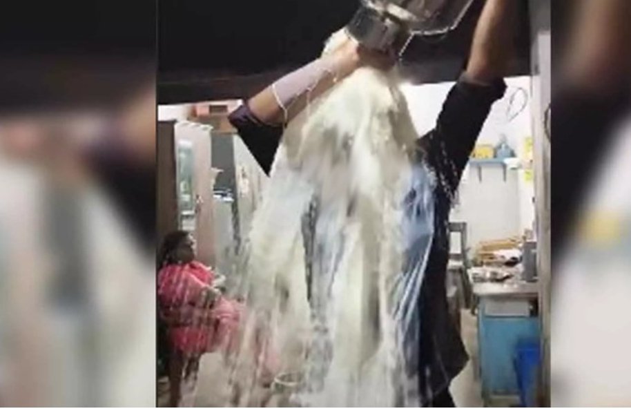 ‘തന്റെ പശുവിന്റെ പാൽ മാത്രം പിരിഞ്ഞ് പോകുന്നെന്ന സൊസൈറ്റിയുടെ വാദം’; പാൽ തലയിലൂടെ ഒഴിച്ച് പ്രതിഷേധിച്ച് കർഷകൻ