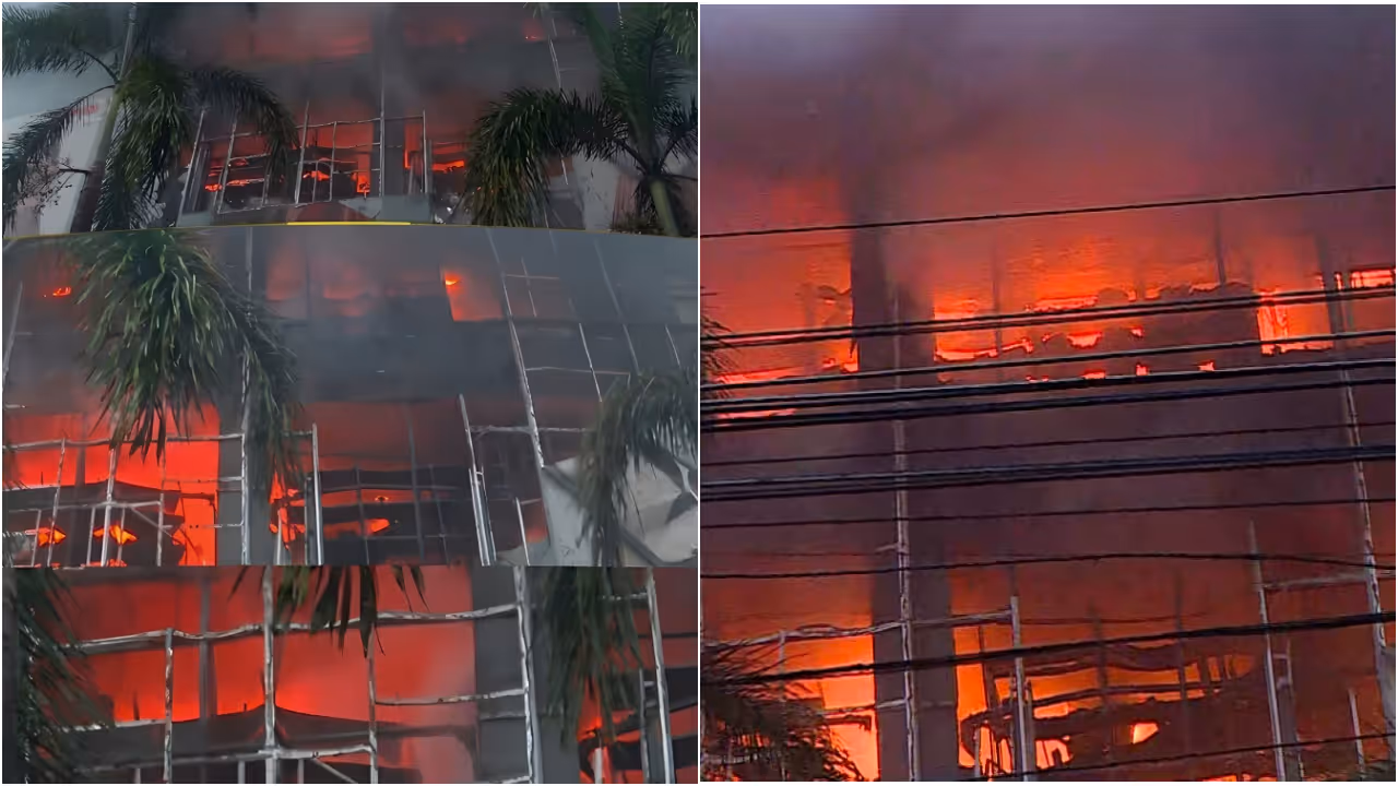 ജയലക്ഷ്മി ടെക്‌സ്റ്റെയിൽസിന്‍റെ കെട്ടിടത്തിൽ തീ ആളിപ്പടരുന്നു, അണയ്ക്കാൻ തീവ്രശ്രമം