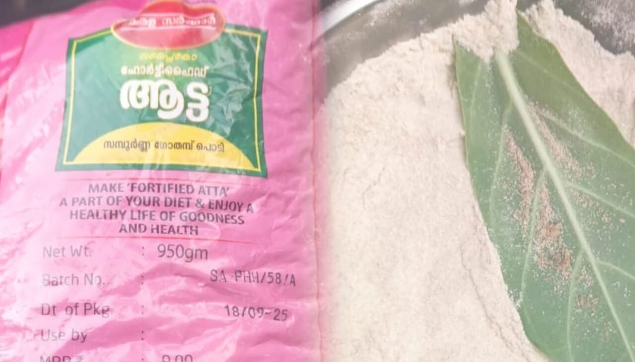 അമ്പലപ്പുഴ: റേഷൻ കടയിൽ നിന്നും ഗോതമ്പുപൊടി വാങ്ങിയ വീട്ടമ്മ വീട്ടിൽ കൊണ്ടുവന്ന് ചപ്പാത്തി ഉണ്ടാക്കാൻ നോക്കിയപ്പോൾ പൊടിയിൽ ചെള്ളും, പുഴുവും. പുറക്കാട് സ്വദേശിയായ വീട്ടമ്മക്കാണ് ചെള്ളും, പുഴുവും ഗോതമ്പുപൊടിയുടെ കൂടെ കിട്ടിയത്.18/9/25 ൽ ആണ് നിർമ്മാണ ഡേറ്റ്. നിർമ്മാണ ഡേറ്റ് മുതൽ 3 മാസം വരെ പൊടി ഉപയോഗിക്കാമെന്നാണ് പായ്ക്കറ്റിൽ എഴുതിയിരിക്കുന്നത്. കേരള സർക്കാർ