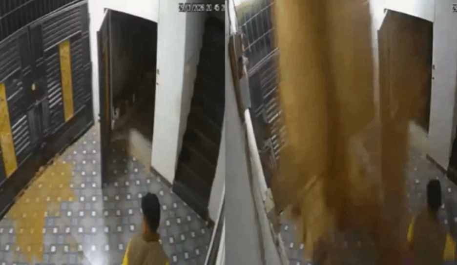 വീടിന്റെ മുറ്റം വിണ്ടുകീറി പൊട്ടിത്തെറിച്ച് ഉഗ്രശബ്ദത്തോടെ പുറത്തേക്ക് ചീറ്റിത്തെറിച്ച് വെള്ളം. കഴിഞ്ഞ ദിവസം ബിലാസ്പൂരിലാണ് സംഭവം നടന്നത്. സംഭവത്തിന്റെ ഞെട്ടിക്കുന്ന സിസിടിവി ദൃശ്യങ്ങൾ പുറത്തുവന്നിരിക്കുകയാണ്. അടച്ചിട്ട ഗേറ്റിന് സമീപത്തായി ഒരാൾ നിൽക്കുന്നതും ആദ്യം ഗേറ്റിലൂടെ ചളിവെള്ളം വീടിന് ഉള്ളിലേക്ക് ഒഴുകുന്നതും ദൃശ്യങ്ങളിലുണ്ട്. പിന്നാലെ ഇയാൾ നിന്നിരുന്ന സ്ഥലം വിണ്ടുകയറി പൊട്ടിത്തെറിക്കുകയായിരുന്നു.