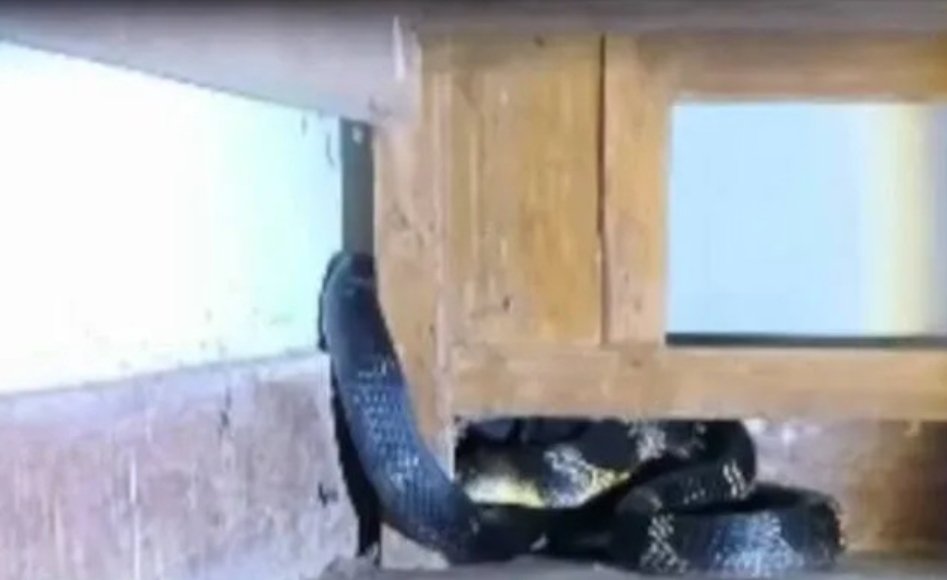 ലൈ​റ്റ് അടിച്ചതോടെ പാമ്പ് അക്രമാസക്തനായി. കേളപ്പനും വസന്തയും മകൻ അനിൽകുമാറുമാണ് ഈസമയം വീട്ടിലുണ്ടായിരുന്നത്. പത്തി വിടർത്തി ചീ​റ്റിയതോടെ വീട്ടുകാർ ഭയന്ന് പുറത്തേക്കോടി. ഉടൻതന്നെ വനംവകുപ്പിനെ വിവരമറിയിച്ചു.ഇരിട്ടി ഫോറസ്​റ്റ് സെക്ഷൻ താൽകാലിക വാച്ചറും മാർക്ക് പ്രവർത്തകനുമായ ഫൈസൽ വിളക്കോടിന്റെ നേതൃത്വത്തിൽ പുലർച്ചെ ഒരു മണിയോടെ പാമ്പിനെ പിടികൂടുകയായിരുന്നു. പിന്നീട് ഇതിനെ ഉൾവനത്തിൽ തുറന്നുവിട്ടു. വീടിന് സമീപത്ത് തോടും മുളങ്കാടുമുണ്ട്. ഇവിടെ നിന്നാകാം പാമ്പ് വന്നതെന്ന് കരുതുന്നത്.