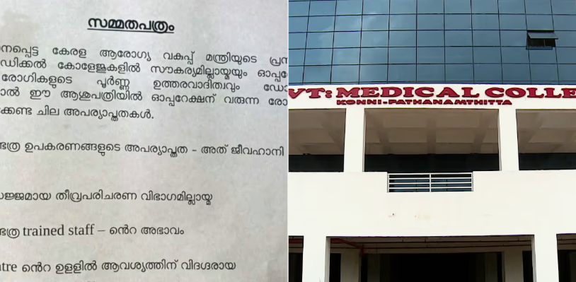 കോന്നി മെഡിക്കൽ കോളേജ് നോട്ടീസ് വിവാദം… ആശുപത്രിയിലെ അപര്യാപ്തകള് ആഴ്ചകള്ക്ക് മുൻപ് ഡോക്ടര് അറിയിച്ചു, അവഗണിച്ച് ആരോഗ്യവകുപ്പ്