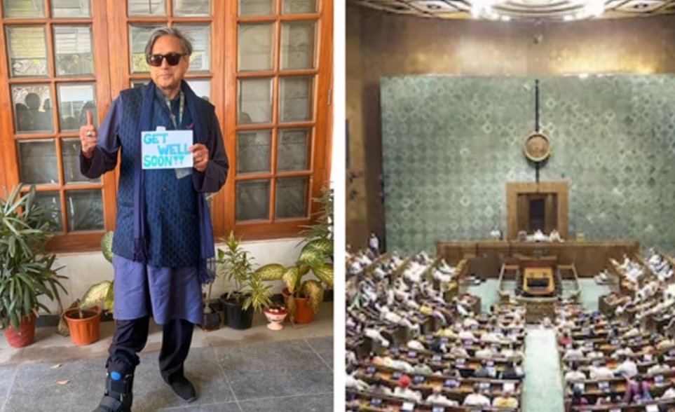 പാർലമെൻറ് വളപ്പിലെ പടിക്കെട്ടിൽ ഇന്നലെ തരൂർ തെന്നി വീണിരുന്നു. കണങ്കാലിൽ ഉളുക്കും, പൊട്ടലും കൈമുട്ടുകളിൽ ചതവും ഉണ്ടായി. പാർലമെൻറ് നടപടികളിൽ വീൽചെയറിലായാലും പരമാവധി പങ്കെടുക്കുമെന്ന് തരൂർ സമൂഹമാധ്യമത്തില്‍ കുറിച്ചു. കാലിനേറ്റ പരിക്ക് ഒടിവാണെന്ന് പരിശോധനയില്‍ സ്ഥിരീകരിച്ചു. നിലവിൽ ചികിത്സയിലാണ്. പാർലമെന്‍ററി പ്രവർത്തനങ്ങളിലും മറ്റ് പ്രവർത്തനങ്ങളിലും കഴിയുന്നത്രയും തുടരും. എല്ലാ ആശംസകൾക്കും നന്ദിയെന്നും തരൂര്‍ വ്യക്തമാക്കി. പടിക്കെട്ടുകളിൽ ബാലൻസ് നഷ്ടപ്പെട്ട് ശശി തരൂർ വീഴുകയായിരുന്നു. സംഭവത്തെ തുടന്ന് 2022 ൽ അദ്ദേഹത്തിന്റെ കണങ്കാലിന് പരിക്കേറ്റതിന്റെ ചിത്രങ്ങൾ തെറ്റായി സമൂഹ മാധ്യമങ്ങളിൽ ആളുകൾ പങ്കിട്ടു.