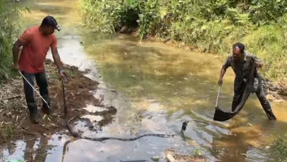 എറണാകുളം കോതമംഗലം പിണ്ടിമനയിൽ നിന്ന് കൂറ്റൻ രാജവെമ്പാലയെ പിടികൂടി. പടിപ്പാറ ഭാഗത്ത് സ്വകാര്യ വ്യക്തിയുടെ റബ്ബർ തോട്ടത്തിൽ ഉച്ചയോടെയാണ് രാജവെമ്പാലയെ ആദ്യം കണ്ടത്. ഏറെ നേരത്തെ പരിശ്രമത്തിനൊടുവിൽ അതിസാഹസികമായി പാമ്പിനെ കൂട്ടിലാക്കുകയായിരുന്നു