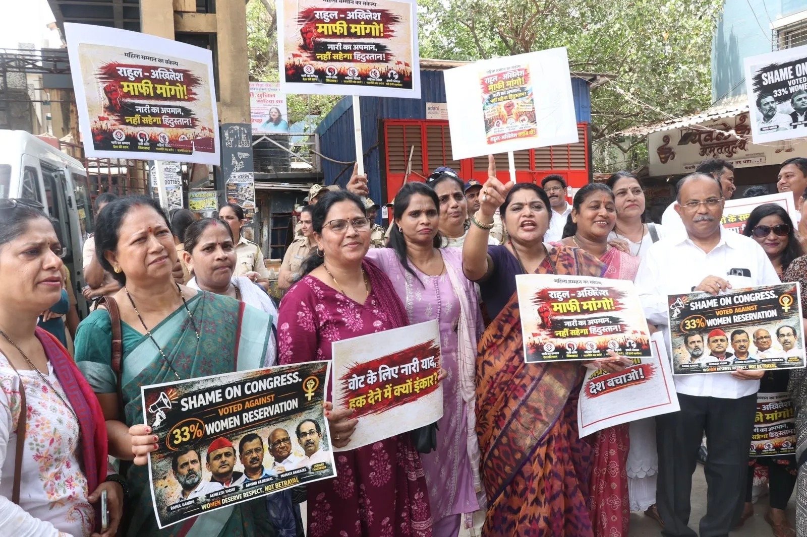 ലോക്സഭയിൽ വനിതാ സംവരണ ബിൽ പരാജയപ്പെട്ടതിനെത്തുടർന്നാണ് പ്രതിഷേധ മാർച്ച് നടത്തിയത്. ബിജെപി എംപിമാരായ ഹേമ മാലിനി, ബാൻസുരി സ്വരാജ്, ഡൽഹി മുഖ്യമന്ത്രി രേഖ ഗുപ്ത, വീരേന്ദ്ര സച്ച്ദേവ. മനോജ് തിവാരി എന്നിവരടക്കം ഒട്ടേറെപ്പേർ മാർച്ചിൽ പങ്കെടുത്തു. രാഹുലും കൂട്ടരും സ്ത്രീകളെ ചതിച്ചു, സ്ത്രീകളുടെ അവകാശങ്ങൾ ഇല്ലാതാക്കി തുടങ്ങിയ മുദ്രാവാക്യങ്ങൾ ഉയർത്തിയായിരുന്നു പ്രതിഷേധം.
