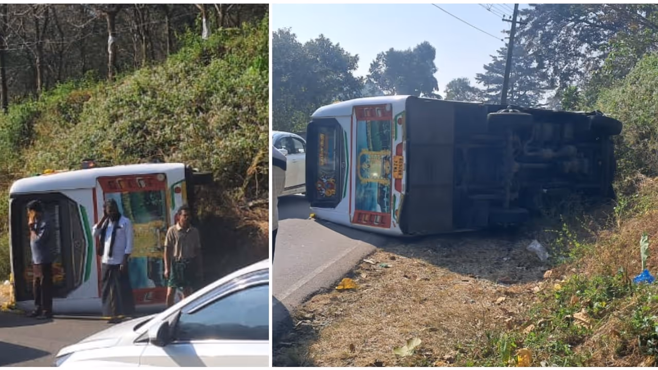 ശബരിമല തീർത്ഥാടക സംഘം സഞ്ചരിച്ച മിനി ബസ് നിയന്ത്രണം വിട്ട് മറിഞ്ഞു, 3 പേർക്ക് പരിക്ക്
