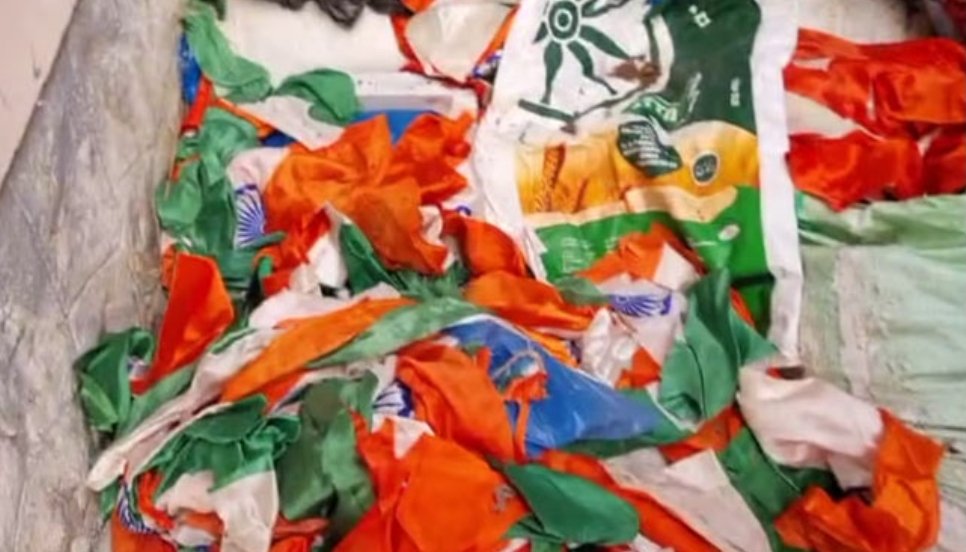 മാലിന്യ കൂമ്പാരത്തിന് സമീപം ദേശീയ പതാകകൾ കൂട്ടിയിട്ടിരിക്കുന്നു; ‘കടുത്ത അനാദരവ്, പരാതിയുമായി പത്തനംതിട്ട കോൺഗ്രസ് ജില്ലാ കമ്മിറ്റി