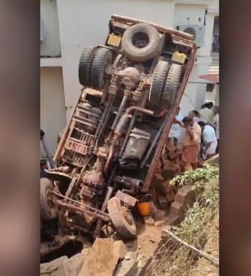 നിയന്ത്രണം വിട്ട ലോറി തലകീഴായി പള്ളി കെട്ടിടത്തിലേക്ക് മറിഞ്ഞ് അപകടം..ലോറി ഡ്രൈവർ…
