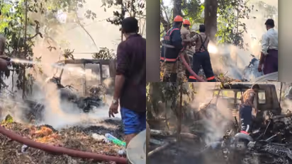 ക്ലീനിങ് സ്റ്റാഫ് ചപ്പുചവറുകൾ കത്തിക്കുന്നതിനിടയിൽ തീപടർന്നു, പാങ്ങോട് പൊലീസ് സ്റ്റേഷനിൽ സൂക്ഷിച്ചിരുന്ന വണ്ടികൾക്ക് തീപിടിച്ചു