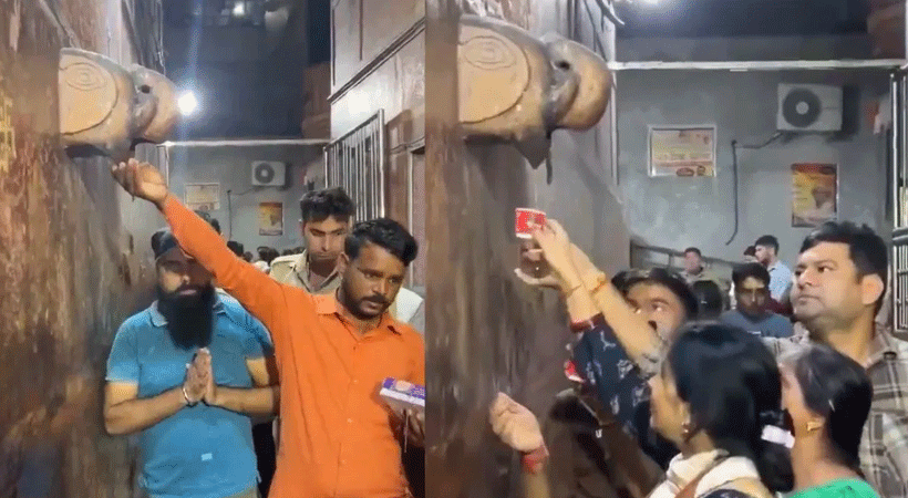 ക്ഷേത്രത്തില്‍ ‘അമൃതാ’യി ഭക്തര്‍ കുടിക്കുന്നത് എസിയിലെ വെള്ളം.ക്ഷേത്രത്തിലെ ചുമരില്‍ നിര്‍മിച്ചിട്ടുള്ള ആനയുടെ തലയുടെ രൂപത്തിലുള്ള ഭാഗത്ത് നിന്നാണ് വെള്ളം ഒഴുകിയെത്തിയിരുന്നത്. മഥുരയിലെ വൃന്ദാവനത്തില്‍ സ്ഥിതി ചെയ്യുന്ന ബങ്കെ ബിഹാരി ക്ഷേത്രത്തിലാണ് സംഭവം. പ്രതിദിനം ഏകദേശം 10,000 മുതല്‍ 15,000 വരെ ആളുകള്‍ എത്തുന്ന ക്ഷേത്രമാണിത്. ക്ഷേത്രത്തിലെ പ്രതിഷ്ഠയായ കൃഷ്ണന്റെ പാദങ്ങളില്‍ നിന്ന് ഒഴുകിയെത്തുന്ന വെള്ളമാണിതെന്നാണ് ക്ഷേത്ര ഭാരവാഹികള്‍ ഭക്തരോട് പറഞ്ഞിരുന്നത്. ഭക്തര്‍ കുടിക്കുന്നത് എസിയിലെ വെള്ളമാണെന്ന് തുറന്നുകാട്ടി യൂട്യൂബറാണ് രംഗത്തെത്തിയത്. വെള്ളം ശേഖരിച്ച് കുടിക്കുന്ന ആളുകളുടെ വീഡിയോ സോഷ്യല്‍ മീഡിയയില്‍ പ്രചരിച്ചതോടെ ക്ഷേത്രഭാരവാഹികള്‍ക്കെതിരെ വിമർശനം ശക്തമാണ്.