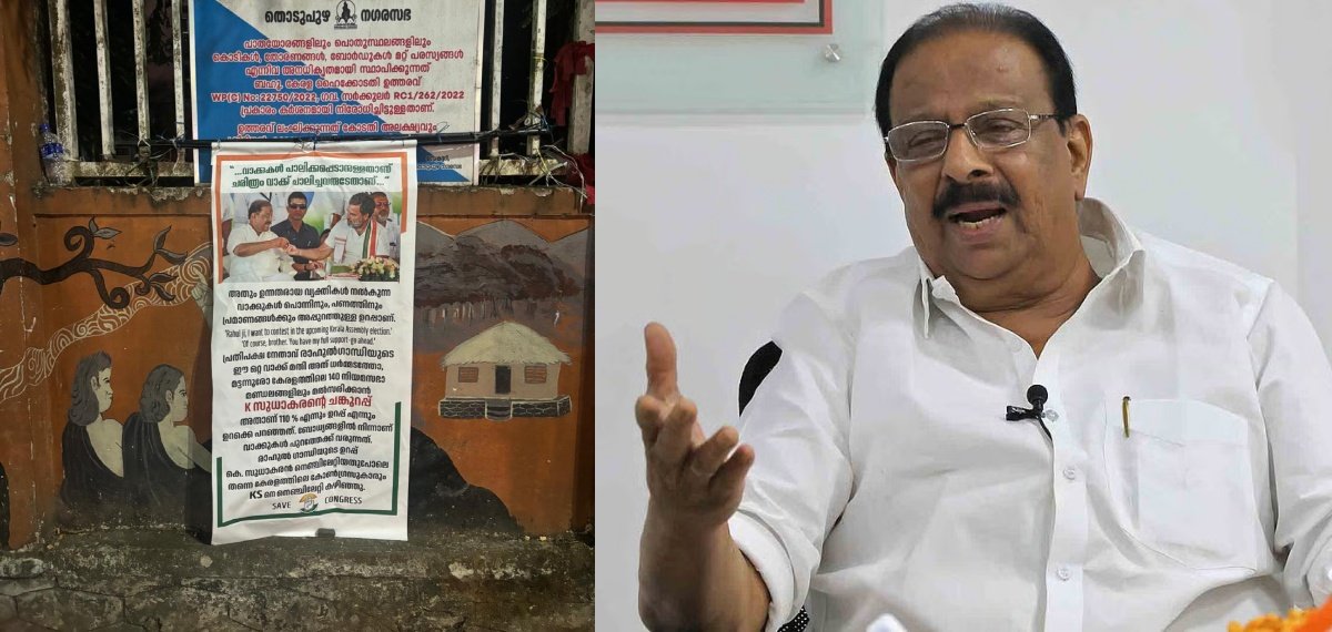‘എന്റെ എല്ലാ പിന്തുണയുമുണ്ട്, മുന്നോട്ട് പോകൂ’; രാഹുൽ ഗാന്ധിയുടെ വാക്കുകൾ ഉയർത്തി സുധാകരനായി പോസ്റ്റർ