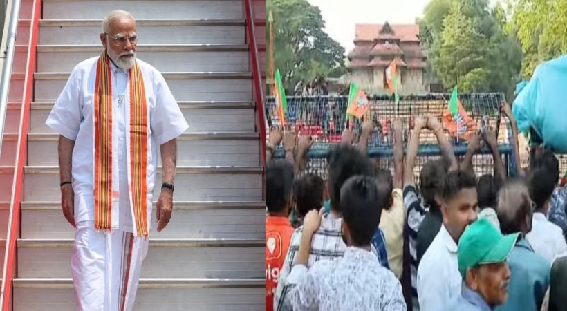 പാലക്കാട് വികസനത്തിന്റെ ‘മോദി ഗ്യാരന്റി’ പ്രഖ്യാപിച്ച ശേഷമാണ് അദ്ദേഹം തൃശൂരിലെത്തിയത്. കൽപ്പാത്തിയെ കാശിയോട് ഉപമിച്ച അദ്ദേഹം, കേരളത്തിന്റെ അതിവേഗ വികസനത്തിന് ബിജെപിയെ വിജയിപ്പിക്കണമെന്ന് ആഹ്വാനം ചെയ്തു. കേരളത്തിലെ മഹാന്മാരെ പേരെടുത്ത് പരാമർശിച്ചായിരുന്നു പാലക്കാട്ടെ അദ്ദേഹത്തിന്റെ പ്രസംഗം. പ്രധാനമന്ത്രിയുടെ സന്ദർശനം പ്രമാണിച്ച് തൃശൂർ നഗരത്തിൽ കർശന സുരക്ഷയാണ് ഏർപ്പെടുത്തിയിരിക്കുന്നത്. രാവിലെ മുതൽ ഗതാഗത നിയന്ത്രണങ്ങൾ ഏർപ്പെടുത്തിയിരുന്നെങ്കിലും ജനങ്ങളുടെ ഒഴുക്കിന് കുറവില്ലായിരുന്നു.