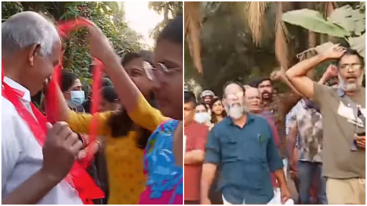 ‘അഭിവാദ്യങ്ങൾ, അഭിവാദ്യങ്ങൾ, സഖാവ് കുഞ്ഞികൃഷ്ണന് അഭിവാദ്യങ്ങൾ’, രക്തഹാരം അണിയിച്ച് അനുകൂലികൾ..