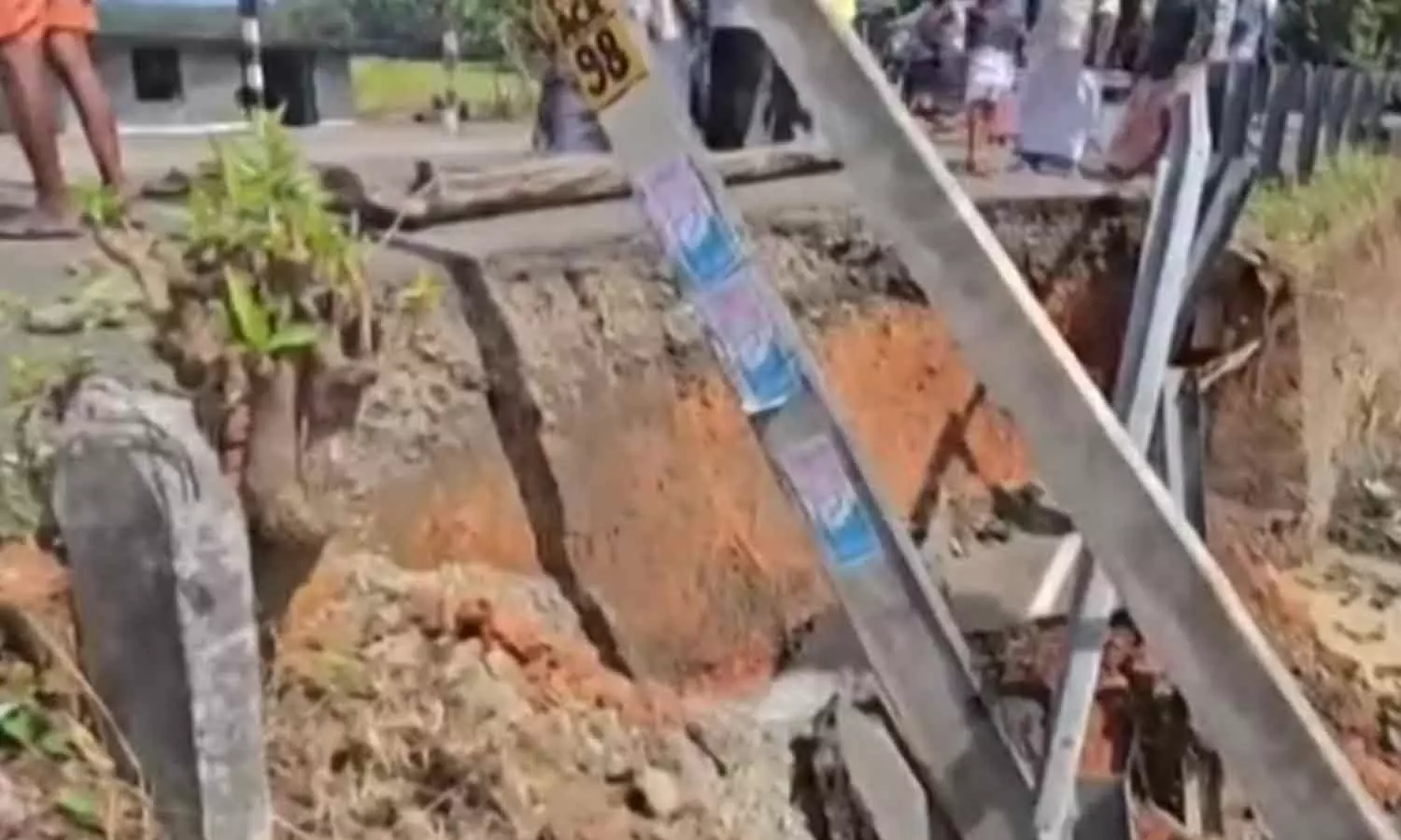 തൃശൂർ പുന്നയൂർക്കുളം മാഞ്ചിറയിൽ റോഡ് തോട്ടിലേക്ക് തകർന്നു വീണു; പ്രതിഷേധവുമായി നാട്ടുകാർ രംഗത്ത്