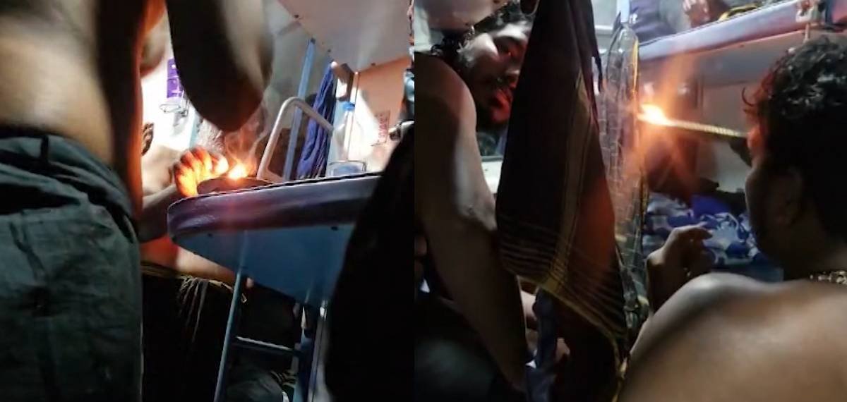 ട്രെയിനില് കര്പ്പൂരം കത്തിച്ച് പ്രാർത്ഥന നടത്തി ശബരിമല തീർത്ഥാടകർ…