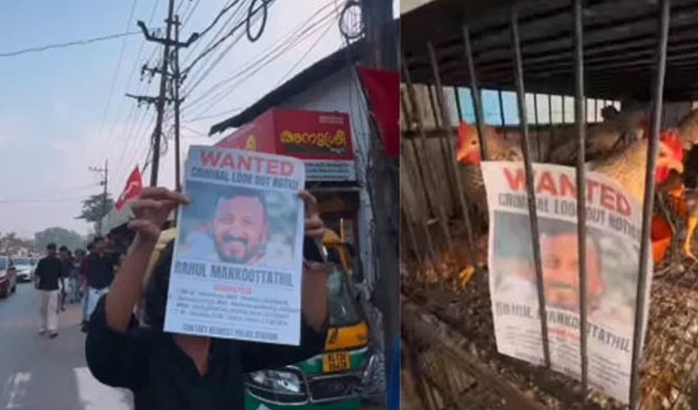 ‘പീഡന വീരൻ രാഹുൽ മാങ്കൂട്ടത്തിലിനെ എത്രയും പെട്ടെന്ന് പോലീസ് അറസ്റ്റ് ചെയ്യുക എന്ന ആവശ്യമുന്നയിച്ചുകൊണ്ട് എസ് എഫ് ഐ എടക്കാട് ഏരിയ കമ്മിറ്റിയുടെ നേതൃത്വത്തിൽ എടക്കാട് ടൗണിൽ ലുക്ക് ഔട്ട് നോട്ടീസ് നൽകിയാണ് പ്രതിഷേധം സംഘടിപ്പിച്ചത്. രാഹുലിന്റെ ചിത്രം കോഴിക്കൂട്ടിൽ വച്ചിരിക്കുന്നതും പങ്കുവെച്ച ദൃശ്യങ്ങളിൽ കാണാം.