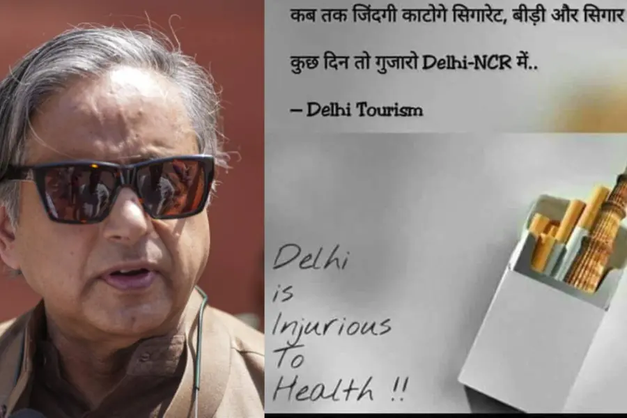 പ്രതീകാത്മകമായി സിഗററ്റുകളും കുത്തബ് മിനാറും വെച്ചിരിക്കുന്ന സിഗരറ്റ് പാക്കറ്റിന്റെ ചിത്രത്തിന് സമീപം ഡൽഹി ആരോഗ്യത്തിന് ഹാനികരം എന്ന് കുറിച്ചിട്ടുള്ള കാർഡ് ഉൾപ്പെടെ എത്ര കാലം നിങ്ങൾ സിഗരറ്റിലും ബീഡിയിലും സിഗാറിലുമായി ജീവിതം തള്ളിനീക്കും, കുറച്ച് ദിവസമെങ്കിലും ഡൽഹി-എൻസിആറിൽ ചെലവഴിക്കൂ എന്ന പരിഹാസ കുറിപ്പാണ് ആറ് കൊല്ലം മുമ്പ് തരൂർ പോസ്റ്റ് ചെയ്തത്. ആ പോസ്റ്റ് റീ പോസ്റ്റ് ചെയ്തുകൊണ്ട് “ആറ് വർഷത്തിനുശേഷവും അതേ നിസ്സംഗത, ഈ പോസ്റ്റ് ദുഃഖകരവും നിരാശാജനകവുമായി ഇപ്പോഴും പ്രസക്തമായി തുടരുന്നു…” എന്ന് തരൂർ കുറിച്ചു. 2019 നവംബറിലാണ് തരൂർ ഈ ചിത്രം പോസ്റ്റ് ചെയ്തത്.