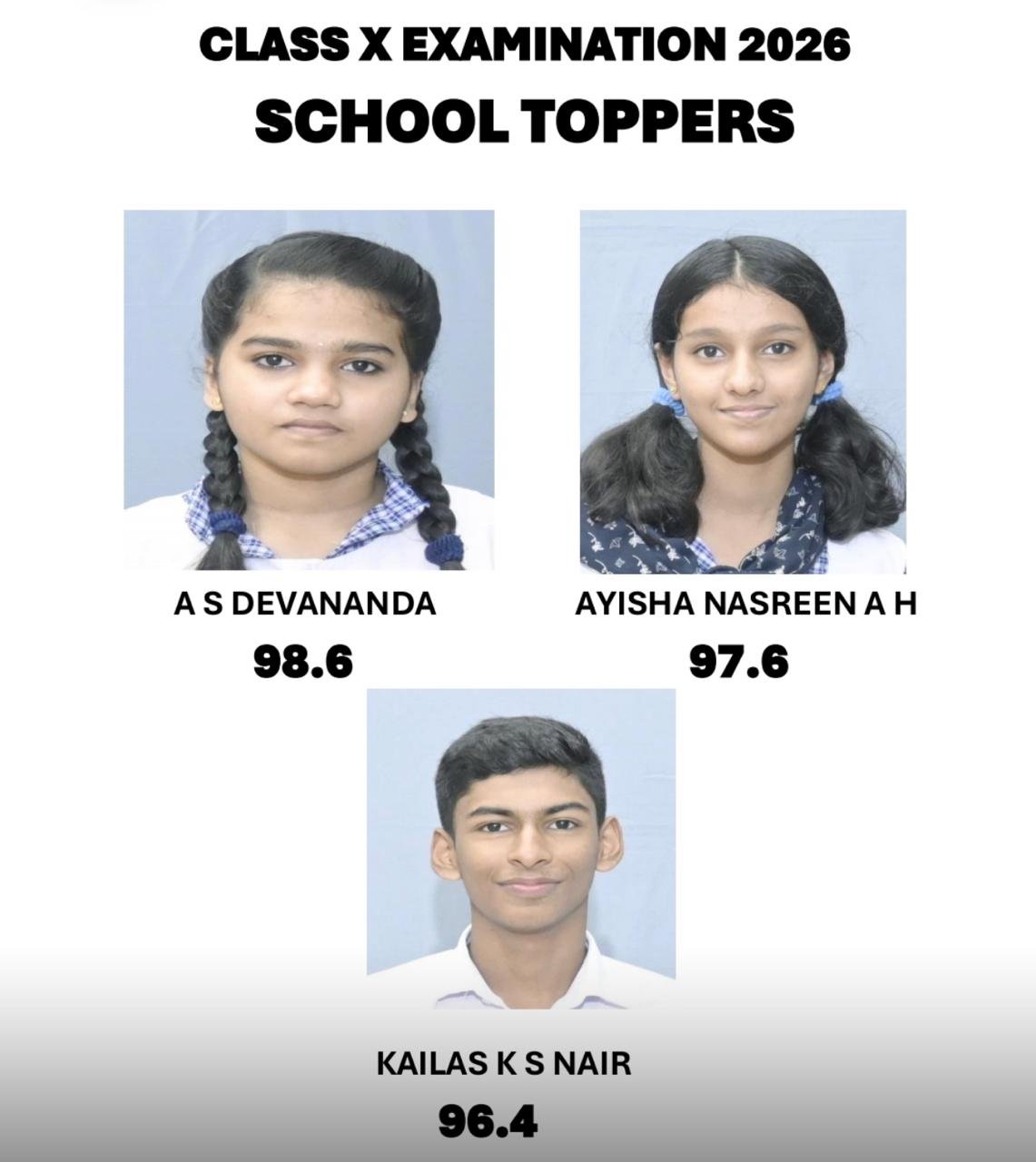 മികച്ച വിജയം സ്വന്തമാക്കിയ എല്ലാ വിദ്യാർത്ഥികളെയും മാനേജ്മെന്റും പ്രിൻസിപ്പലും അധ്യാപകരും അഭിനന്ദിച്ചു.