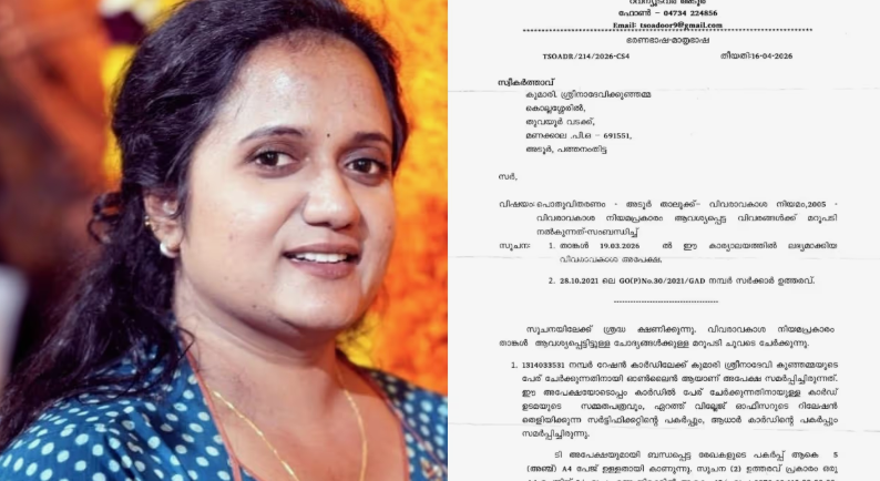 ശ്രീനാദേവി കുഞ്ഞമ്മ റേഷൻ കാർഡിൽ പേര് ചേർത്തത് വ്യാജമായിട്ടല്ല….കാർഡ് ഉടമയുടെ സമ്മതപത്രം ഉണ്ടായിരുന്നെന്ന് വിവരാവകാശ രേഖ…