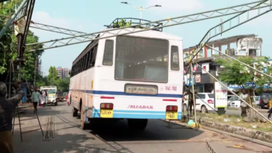 കണ്ണൂർ നഗരത്തിൽ സിപിഎം കെട്ടിയ സമര പന്തലിൽ കെഎസ്ആര്ടിസി ബസ് കുടുങ്ങി. നാളെ നടക്കാനിരുന്ന സമരത്തിനായി കെട്ടിയ പന്തലിലാണ് ബസ് കുടുങ്ങിയത്. റോഡിലേക്ക് ഇറക്കിയാണ് പന്തൽ കെട്ടിയിരുന്നത്.…