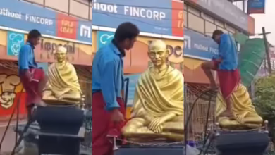 അടിച്ച് ഫിറ്റായി, പുനലൂരിൽ ഗാന്ധി പ്രതിമയ്ക്ക് നേരെ മദ്യപൻ്റെ അതിക്രമം