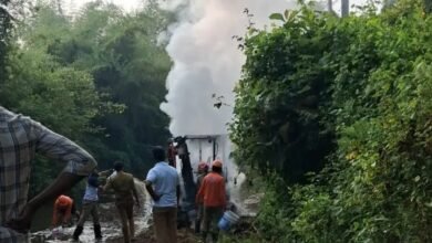 റോഡരികിൽ നിർത്തിയിട്ട മണ്ണുമാന്തി യന്ത്രം തോട്ടിലിറക്കി തീയിട്ടു..പിടിയിൽ