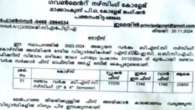 2024-25 വര്ഷത്തെ ഫീസ് അടവിനായുള്ള നോട്ടീസില് ഇല്ലാത്ത വാന് ഫീസും അടയ്ക്കേണ്ട ഗതികേടിലാണ് പത്തനംതിട്ട ഗവ. നഴ്സിങ് കോളേജിലെ രണ്ടാംവര്ഷ വിദ്യാര്ഥികള്. വാന് ഫീസായി 1740 രൂപയാണ്…