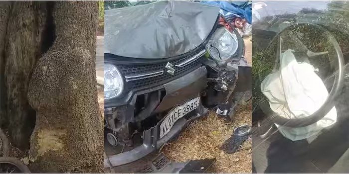 The car in which the people were returning after visiting the Guruvayur temple collided with a tree.