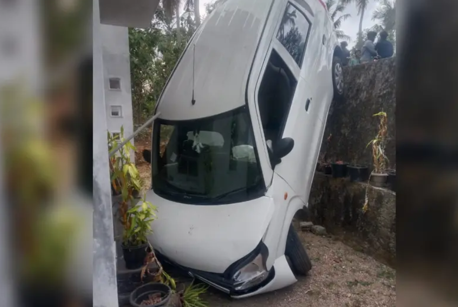 റോഡിൽ നിന്നും നിയന്ത്രണം തെറ്റിയ കാർ താഴ്ചയിലുള്ള വീട്ടുമുറ്റത്തേക്ക് മറിഞ്ഞു..