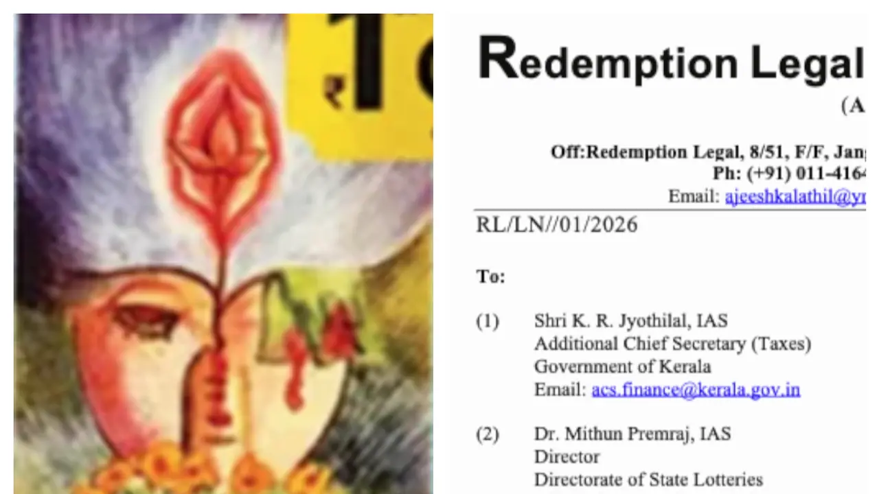 സുവർണ്ണ കേരളം ലോട്ടറിയിലെ ചിത്രം മതവികാരം വ്രണപ്പെടുത്തുന്നു; ലോട്ടറി ഡയറക്ടര്ക്കും ,നികുതി വകുപ്പിനും വക്കീൽ നോട്ടീസ്