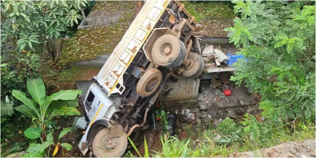 നിർത്തിയിട്ടിരുന്ന ടിപ്പർ ലോറി നിരങ്ങി ഇറങ്ങി വീടിനു മുകളിലേക്ക് മറിഞ്ഞു. വീട് പൂർണമായും തകർന്നു. സംഭവം നടക്കുമ്പോൾ വീട്ടിൽ കുടുംബാംഗങ്ങൾ ഉണ്ടായിരുന്നില്ല. ഇതിനാൽ വലിയ ദുരന്തം ഒഴിവായി. കൊച്ചി-ധനുഷ്കോടി ദേശീയപാതയിൽ കൂമ്പൻപാറ ഫാത്തിമ മാതാ പള്ളിക്ക് സമീപം റോഡരികിൽ താമസിക്കുന്ന താഴത്ത് വീട്ടിൽ വിൽസന്റെ വീട്ടിലേക്കാണ് ലോറി മറിഞ്ഞത്.